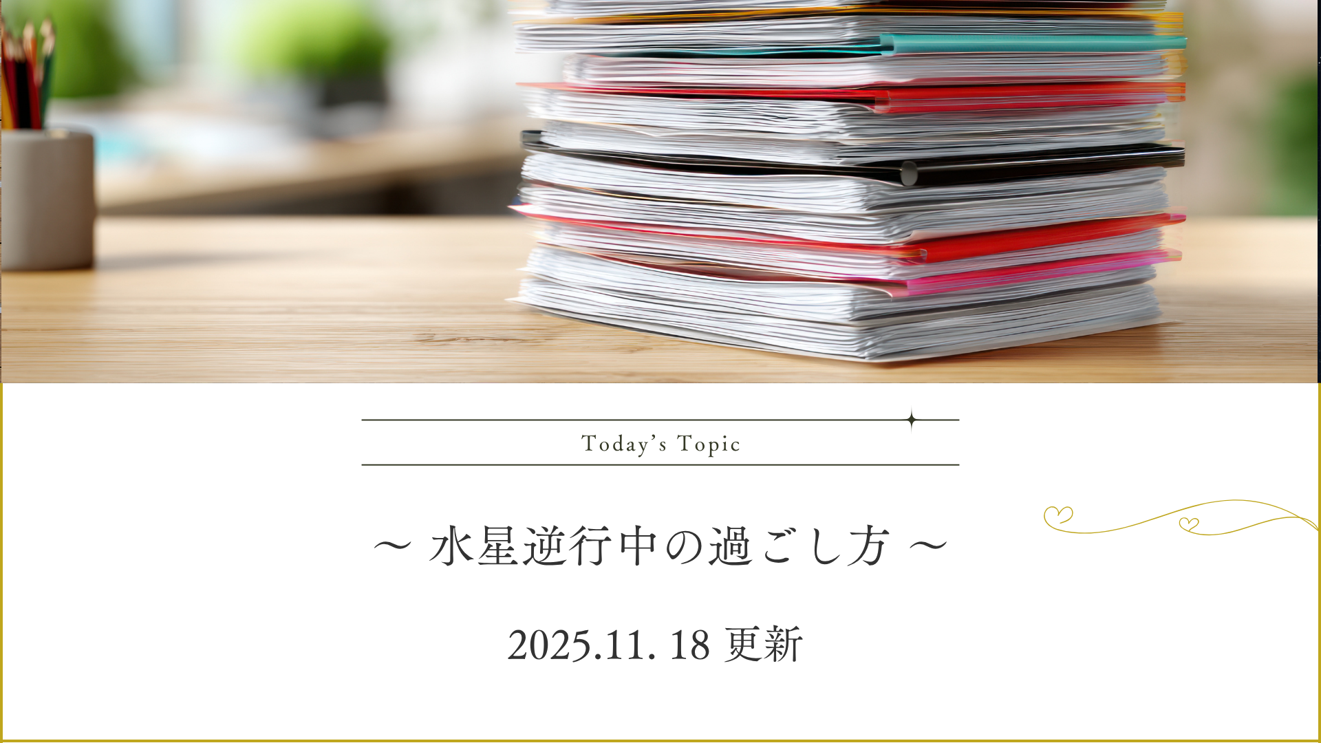 保護中: 水星逆行中の過ごし方 2025 11/18 blog 2025年11月18日 このコンテンツはパスワードで保護されています。表示するには以下にパスワードを入力してください: パスワード: blog pickup 星読み よかったらシェアしてね! URLをコピーしました! URLをコピーしました! 私が使っている手帳 12月の習慣が2026年を飛躍させる この記事を書いた人 ハナグリーン星の学校 関連記事 保護中: 12月の習慣が2026年を飛躍させる 2025年11月29日 保護中: 私が使っている手帳 2025年11月11日 保護中: 11/8(土)に天王星が牡牛座に戻る前に 2025年11月2日 保護中: 10/14~11/7 カラフルな色を使おう 2025年10月21日 保護中: 10/22~海王星-魚座ラスト期間 2025年10月15日 保護中: 10/13-16 スペシャル4days 2025年10月9日 保護中: 9/24-29 火星と冥王星が90度スクエア 2025年9月26日 保護中: 9/22-23 流れが変わります 2025年9月18日